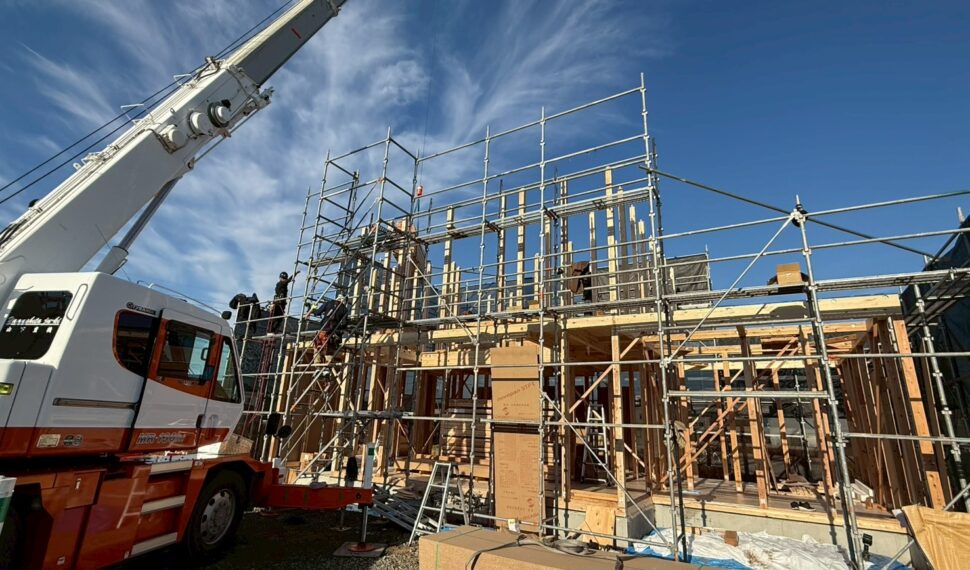本日 T様邸の棟上げと上棟式を行わせていただきました。